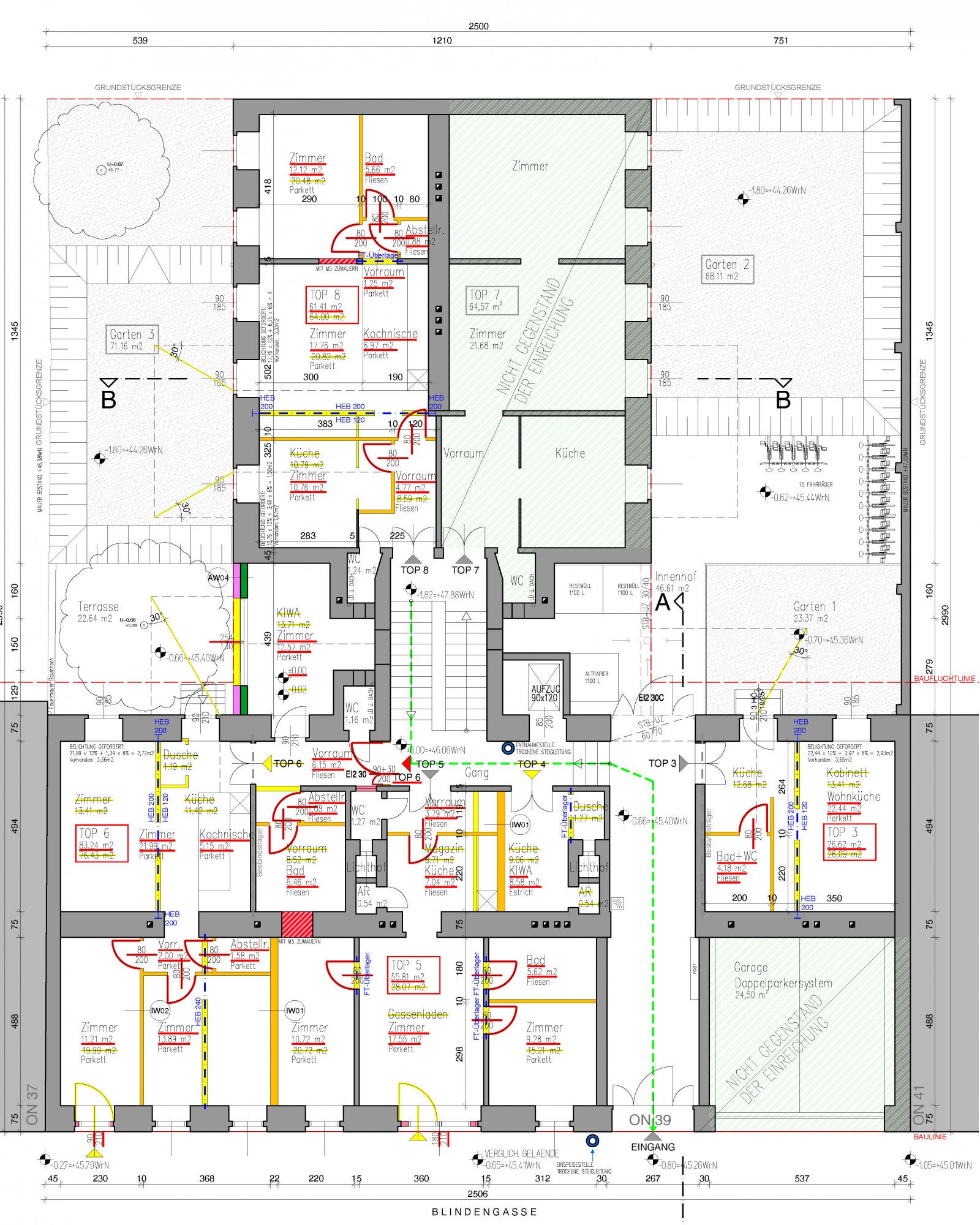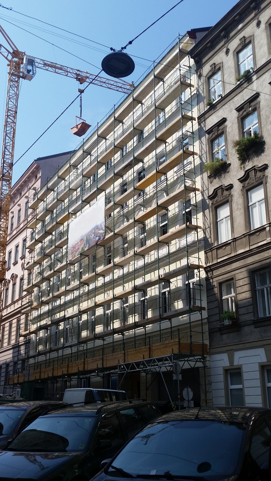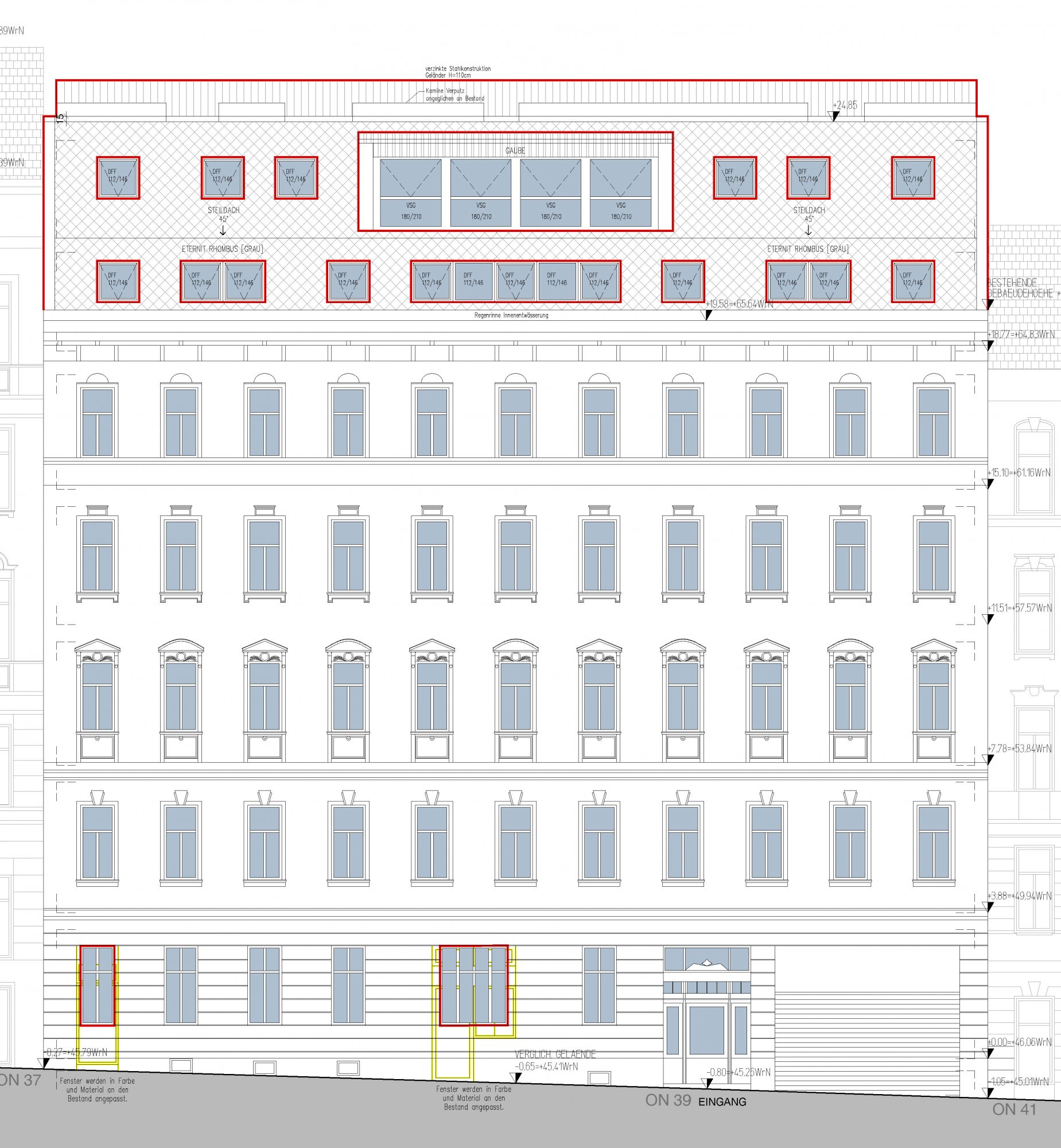 in 1080 Wien, Blindengasse 39 erfolgt die Sanierung von 26 Wohnungen in den Regelgeschossen mit Zubauten seitlich am Stiegenhaus sowie Balkonzubauten, Erneuerungen der Steigleitungen und Geländeanpassungen. Zudem werden französische Fenster mit VSG-Brüstungen hergestellt.