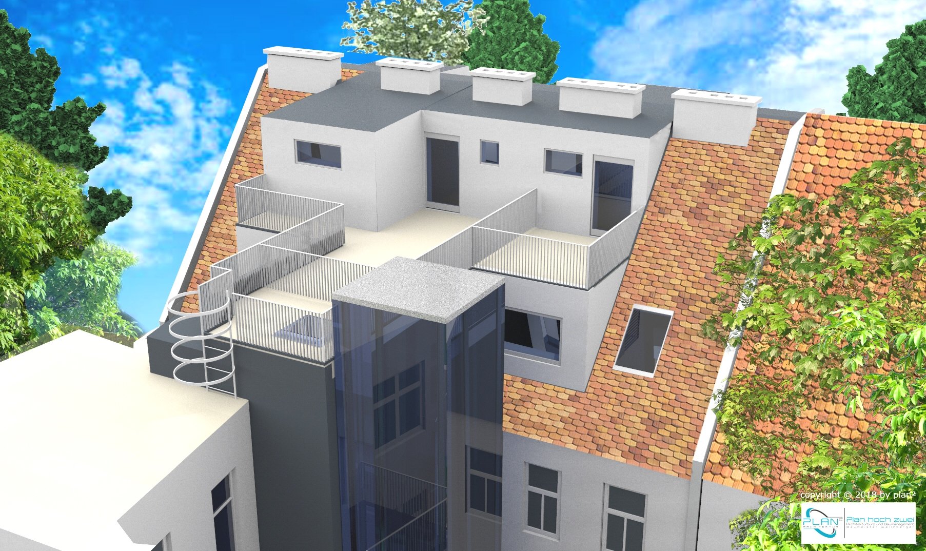 DACHGESCHOSSAUSBAU MIT LIFT, BALKONEN UND STELLPLÄTZEN